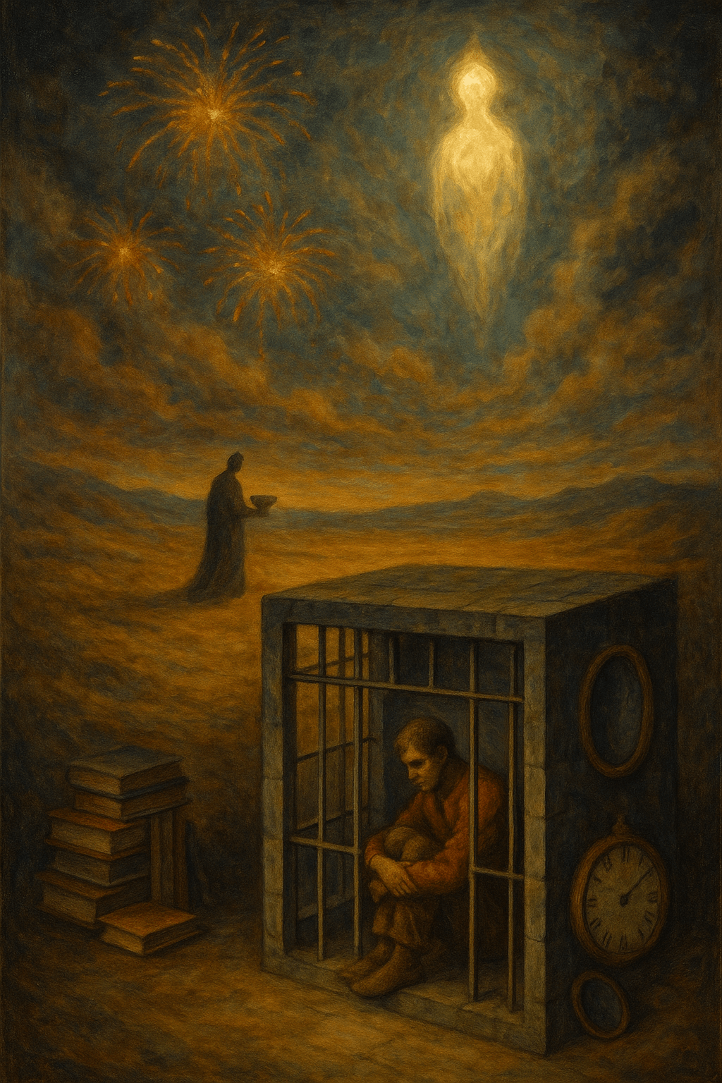 Nello scoprirsi prigioniero però, il carcerato si rende conto di amare la libertà. Nel set di apparenze che popolano la sua coscienza nessuna è mai davvero duratura e pacificante, niente pare avere mai davvero il sapore della libertà.